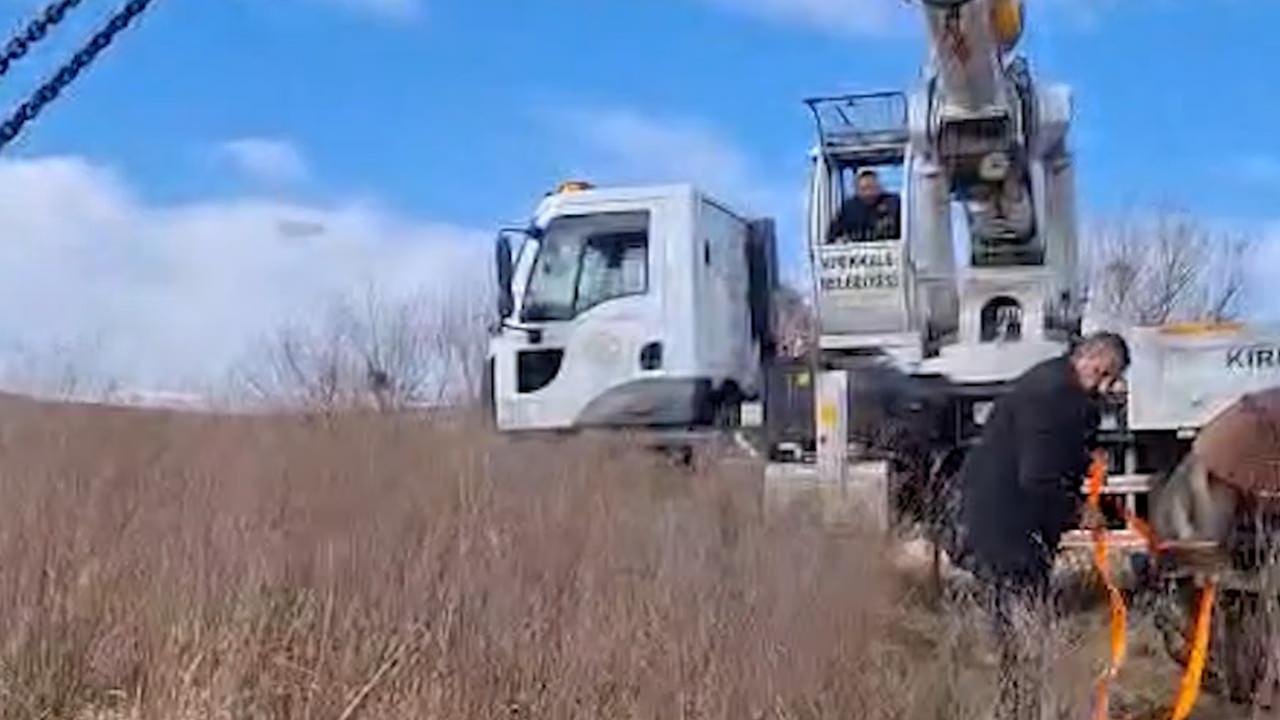 VİNÇ YARDIMIYLA ÇIKARTILDI