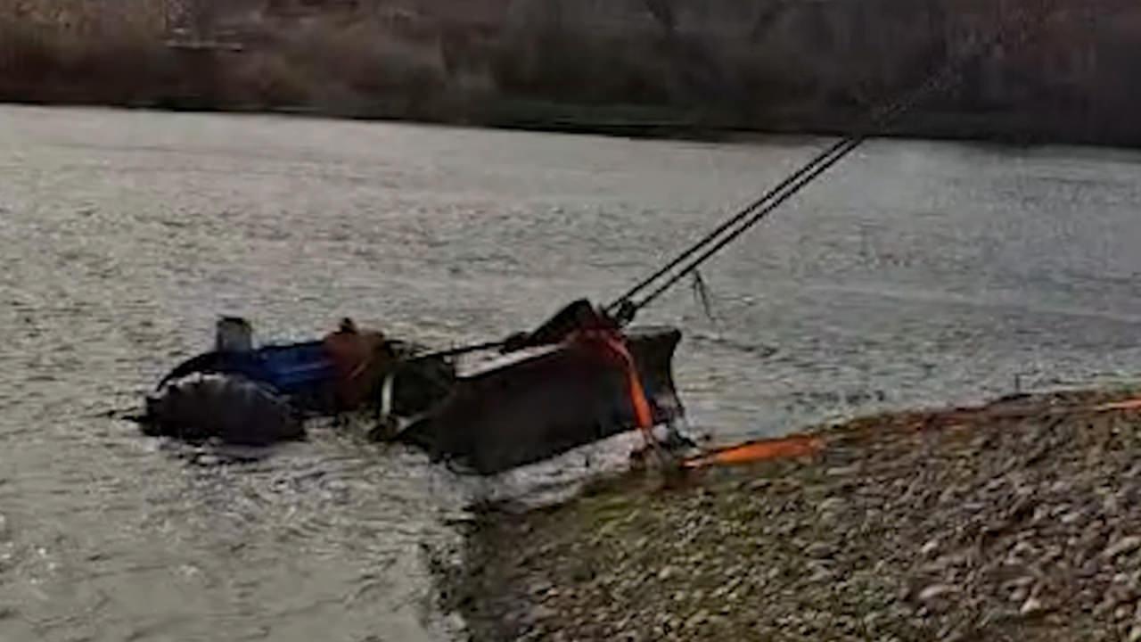 Ancak rampa aşağı kayan traktör kısa sürede suya sürüklendi.