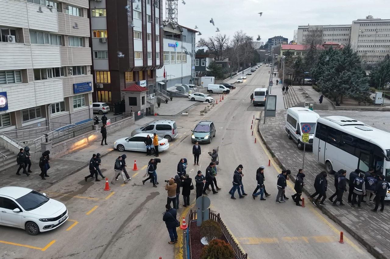 Emniyetteki işlemleri tamamlanan şüpheliler adliyeye sevk edildi.