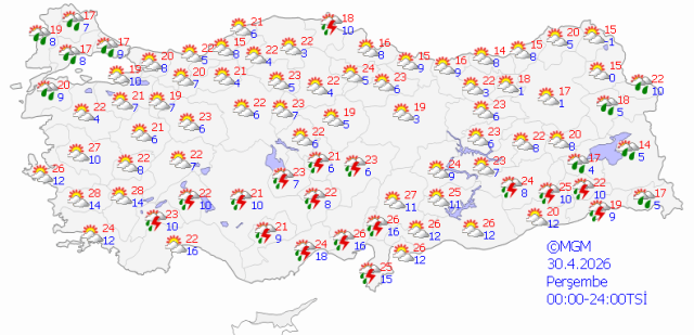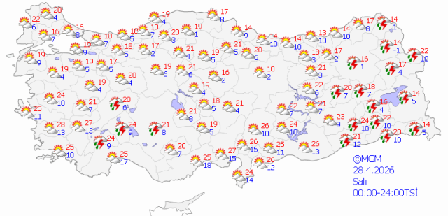 5 GÜNLÜK HAVA DURUMU TAHMİNİ28 NİSAN SALI