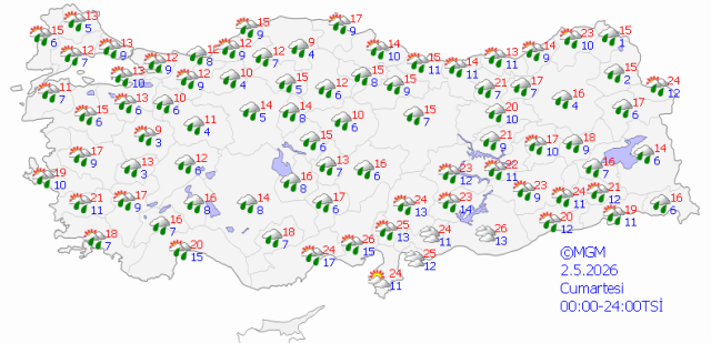 BATI GÜNEŞLİ, DOĞU YAĞIŞLIYarın batı ve güney bölgelerde parçalı bulutlu bir hava beklenirken, doğu kesimlerde sağanak yağışlar etkisini sürdürecek. İstanbul ve İzmir’de daha sakin bir hava görülmesi beklenirken, Ankara başta olmak üzere İç Anadolu ile Doğu ve Güneydoğu Anadolu’da yağışlar gün boyu devam edecek.