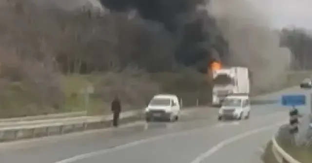 Kırklareli’nin Pınarhisar ilçesinde seyir halindeyken alev alan hamsi yüklü tırda maddi hasar oluştu. Hamsi yüklü TIR, İslambeyli köyü yakınlarında seyir halindeyken henüz belirlenemeyen nedenle alev aldı. Yangını fark eden sürücü, aracı yol kenarına çekerek durumu itfaiyeye bildirdi. Olay yerine sevk edilen itfaiye ekiplerinin müdahalesiyle yangın söndürüldü. Yangında tırda maddi hasar meydana geldi.
