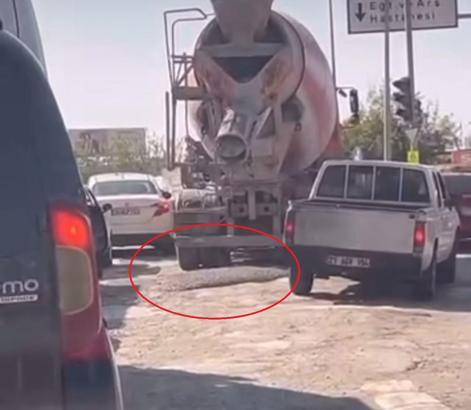 Kırmızı ışıkta bekleyen beton mikserinden yola harç döküldü