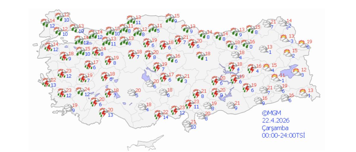 En düşük sıcaklıkların ise perşembe gecesi görülmesi bekleniyor. 23 Nisan’ı 24 Nisan’a bağlayan gece termometrelerin 3 dereceye kadar gerileyeceği öngörülüyor.