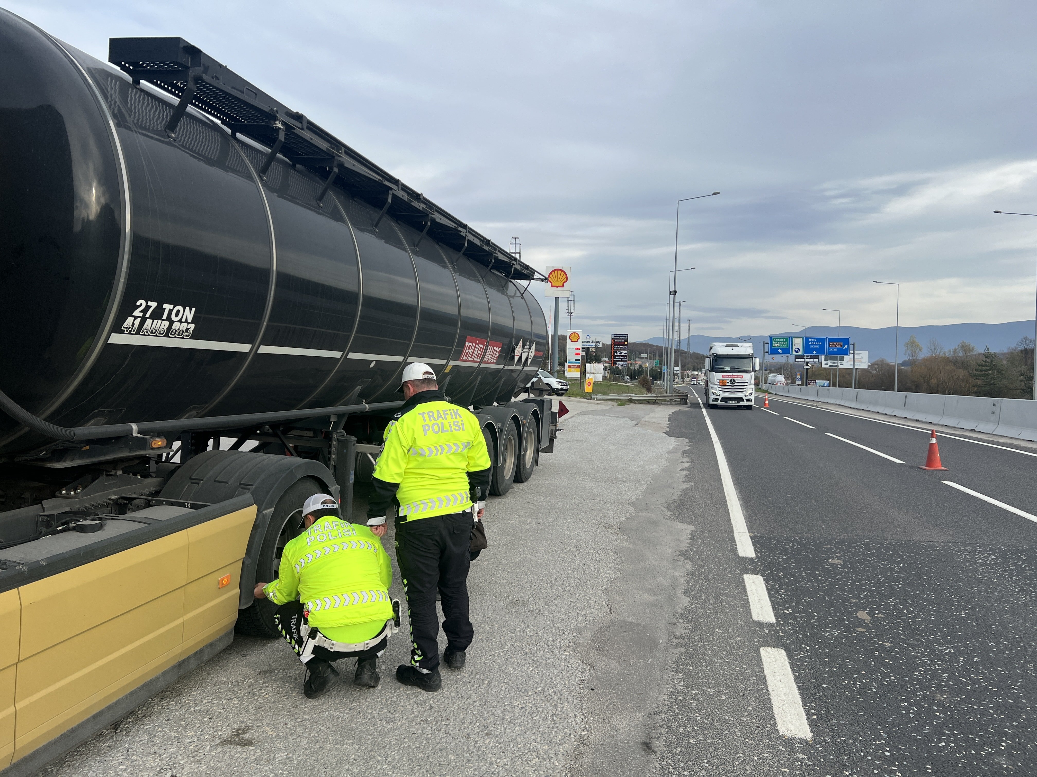 D-100 kara yolunun Bolu Dağı geçişinde ekipler, hafif ticari araç, kamyon, tır ve yolcu otobüslerin kış lastiklerini kontrol etti.