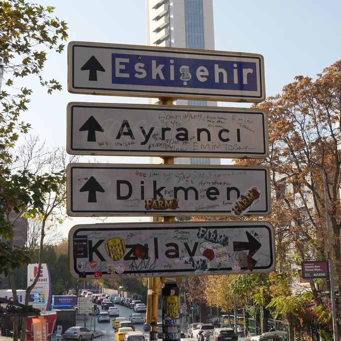 Ancak kısa sürede tabelanın yüzeyine çeşitli stickerlar yapıştırıldığı ve yazılar yazıldığı görüldü. Gençlerin tabelaya asılarak fotoğraf çektikleri, yoldan geçen birçok kişinin de akım için poz verdiği görüldü.