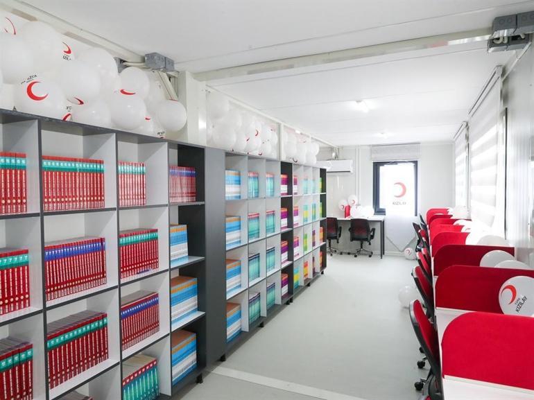 Kızılay’ın prefabrik kütüphanesinden, Kızılay Genel Başkanı Yılmaz ın ders verdiği tıp fakültesine