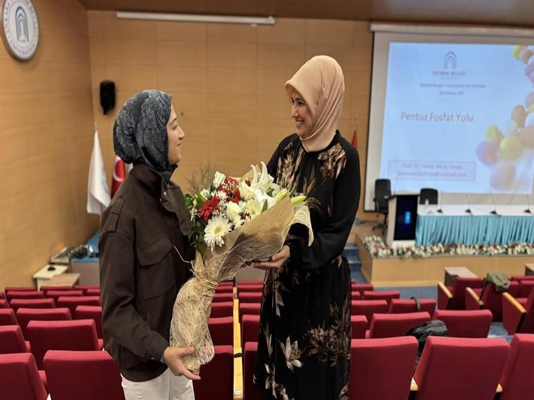 Ders sırasında çok duygulandığını belirten Yılmaz, "Burada ekstra duygulanmamın sebebi kendi hocalık yaptığım yerde ilk dersimi anlatırken o bölgeden gelen Emine Kübra, düşünün ki Tıp Fakültesi en zor kazanılan okullardan bir tanesi; hem depremi yaşayacak hem o zorluğun içinde ders çalışacak ve gelip Ankara'da üniversite okuyacak. Biz onunla gurur duyuyoruz. Bir de bana çiçek almış. Bizim ona çiçek vermemiz lazım. Artık Emine Kübra benim kızım, ben onun ablası olurum, annesi olurum beraber okuruz burada" ifadelerini kullandı.