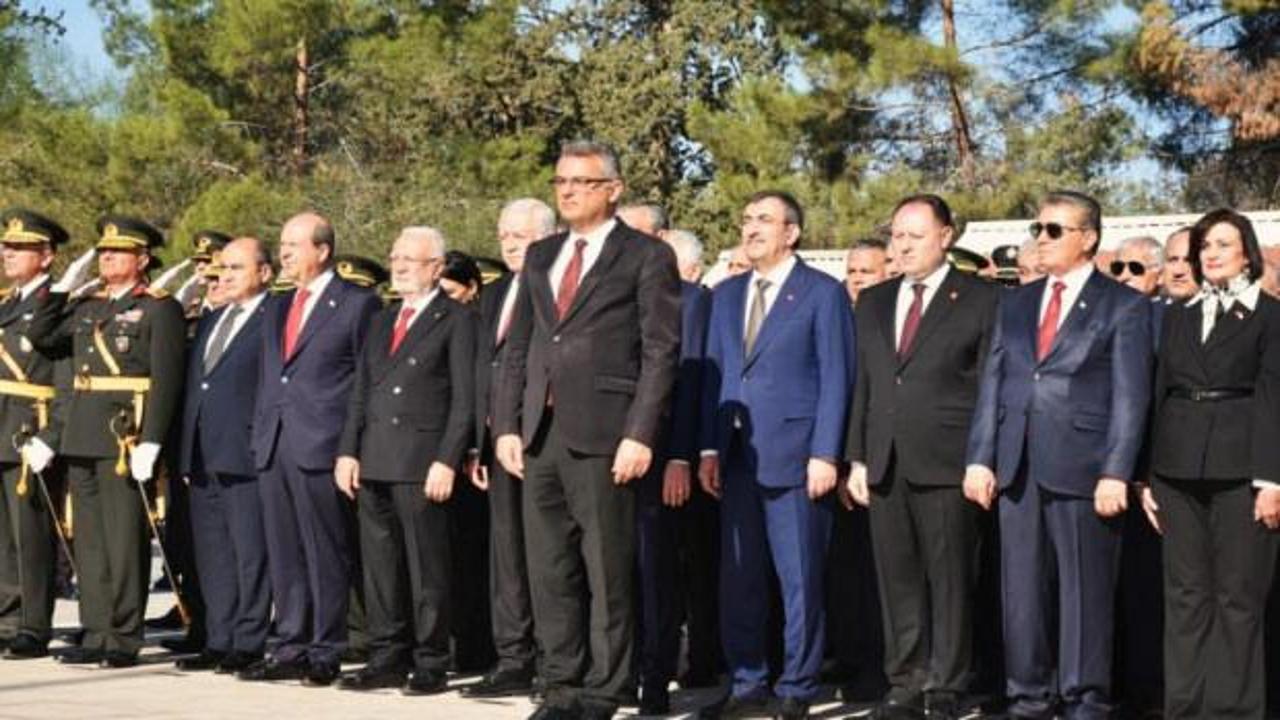 Tebrik kabulünün ardından Girne Kapısı’ndaki Atatürk Anıtı önünde tören düzenlendi. Törene Cumhurbaşkanı Yardımcısı Cevdet Yılmaz, Cumhuriyet Halk Partisi (CHP) Genel Başkanı Özgür Özel, KKTC Cumhurbaşkanı Tufan Erhürman, Cumhuriyet Meclis Başkanı Ziya Öztürkler, KKTC Başbakanı Ünal Üstel, Yüksek Mahkeme Yargıcı Gülden Çiftçioğlu, 2. Cumhurbaşkanı Mehmet Ali Talat, 5. Cumhurbaşkanı Ersin Tatar, Türkiye'nin Lefkoşa Büyükelçisi Ali Murat Başçeri, TBMM Başkanvekili Celal Adan, Türkiye Milli Savunma Bakanlığı temsilcisi Muharip Hava Kuvveti Komutanı Hava Orgeneral Rafet Dalkıran, Kıbrıs Türk Barış Kuvvetleri (KTBK) Komutanı Korgeneral Sebahattin Kılınç, KKTC Güvenlik Kuvvetleri (GKK) Komutanı Tümgeneral İlker Görgülü ile parti ve kuruluşların temsilcileri katıldı. Anıta çelenk bırakılmasıyla başlayan tören, saygı duruşu ve İstiklal Marşı eşliğinde bayrakların göndere çekilmesiyle devam etti.