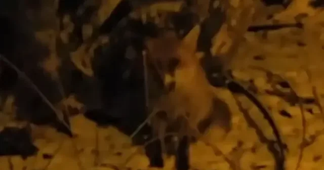 Kartepe’de yiyecek arayan tilkiyi, eliyle besledi