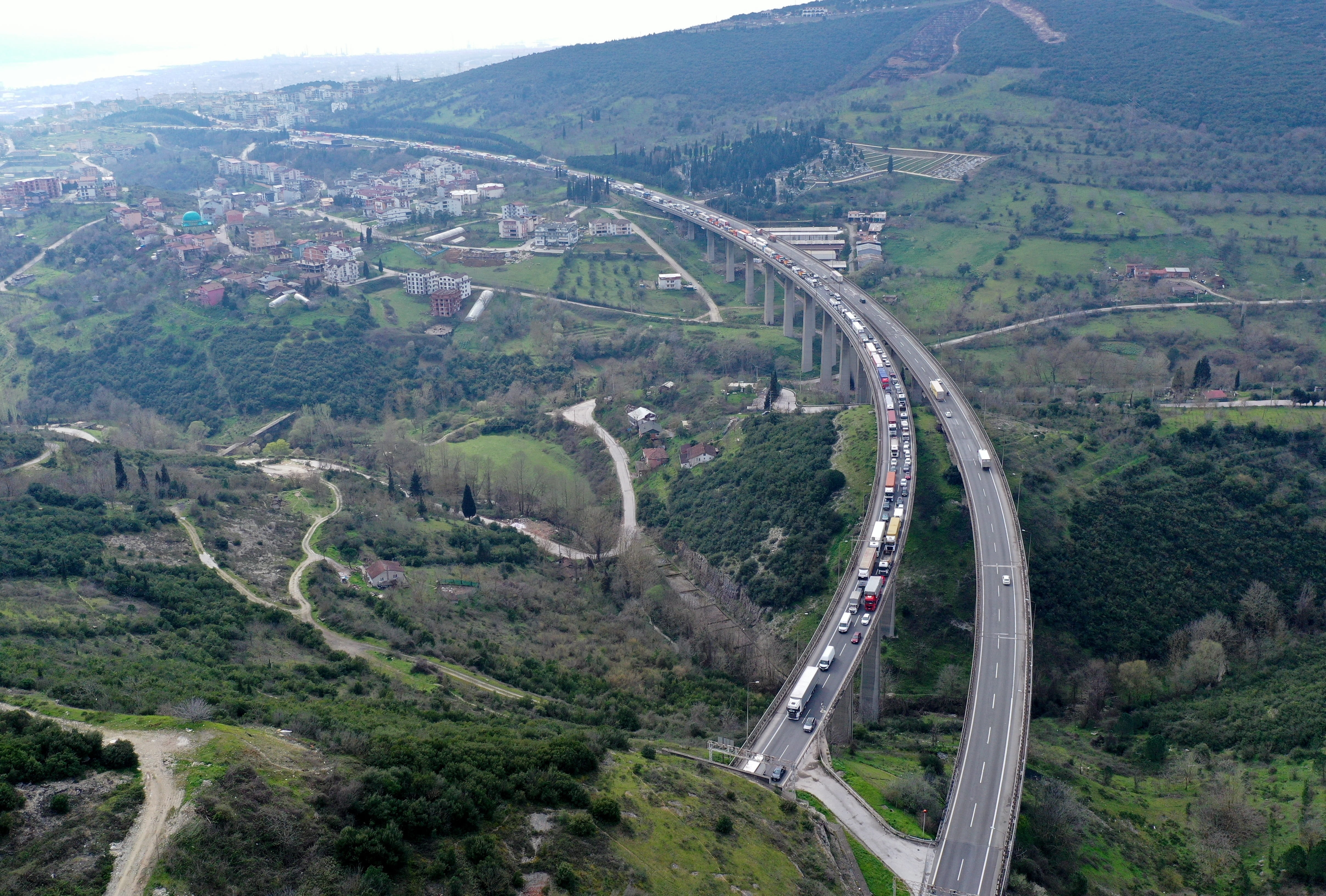 Bu arada, otoyolda oluşan yoğunluk havadan görüntülendi.