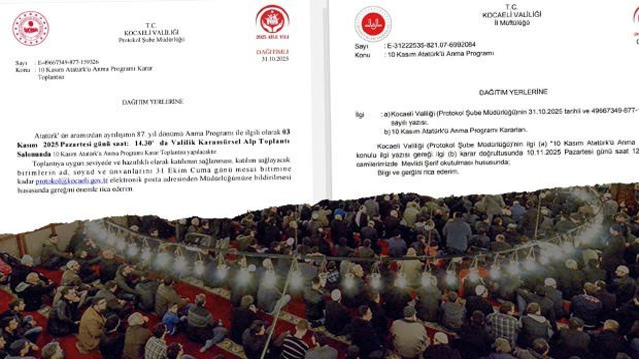 “Kocaeli Valiliği tarafından 10 Kasım Anma Programları kapsamında camilerimizde mevlid-i şerif okutulması kararı verilmiştir. İlgili yazıda, din görevlilerinden il merkezindeki tüm camilerde ve 12 ilçenin merkez camilerinde mevlid programı yapılması istenmektedir.