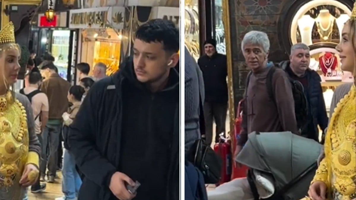 Tacından kelepçelerine kadar altınlarla donanan fenomen, Kapalıçarşı’da dikkatleri üzerine topladı. Dalveren, kendisini görenlere esprili şekilde “Gözlerinizi kamaştırdıysam kusura bakmayın” dedi.