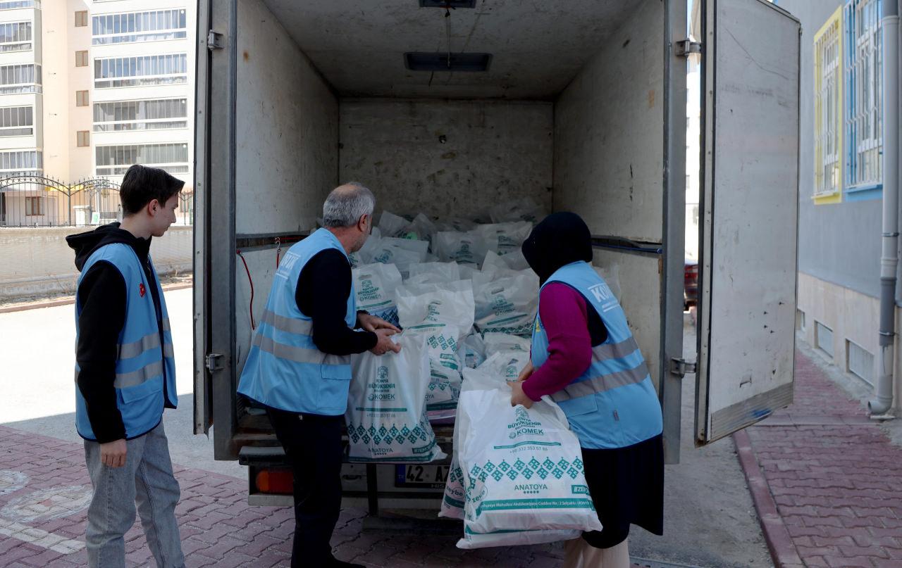 Karatay ilçesinde gerçekleştirilen yardım çalışmaları kapsamında da ihtiyaç sahibi ailelere gıda desteği sağlandı. Hazırlanan yardım kolileri 208 aileye ulaştırıldı.