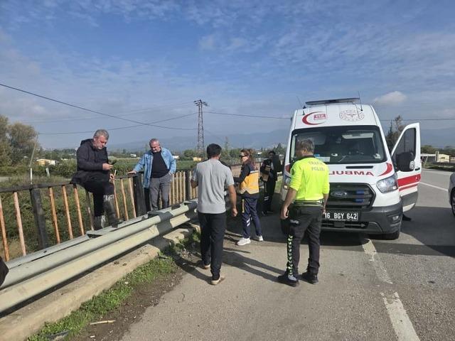 Kaza, saat 11.00 sıralarında Orhangazi-İznik karayolu eski Mezbahane köprüsü girişinde meydana geldi. Edinilen bilgiye göre, Orhangazi’den İznik istikametine doğru gitmekte olan K.K. (28) idaresindeki kamyonet, kontrolden çıkarak köprü demirlerine saplandı. Dere yatağına uçmaktan son anda kurtulan kamyonetin sürücüsü K.K. yaralandı.