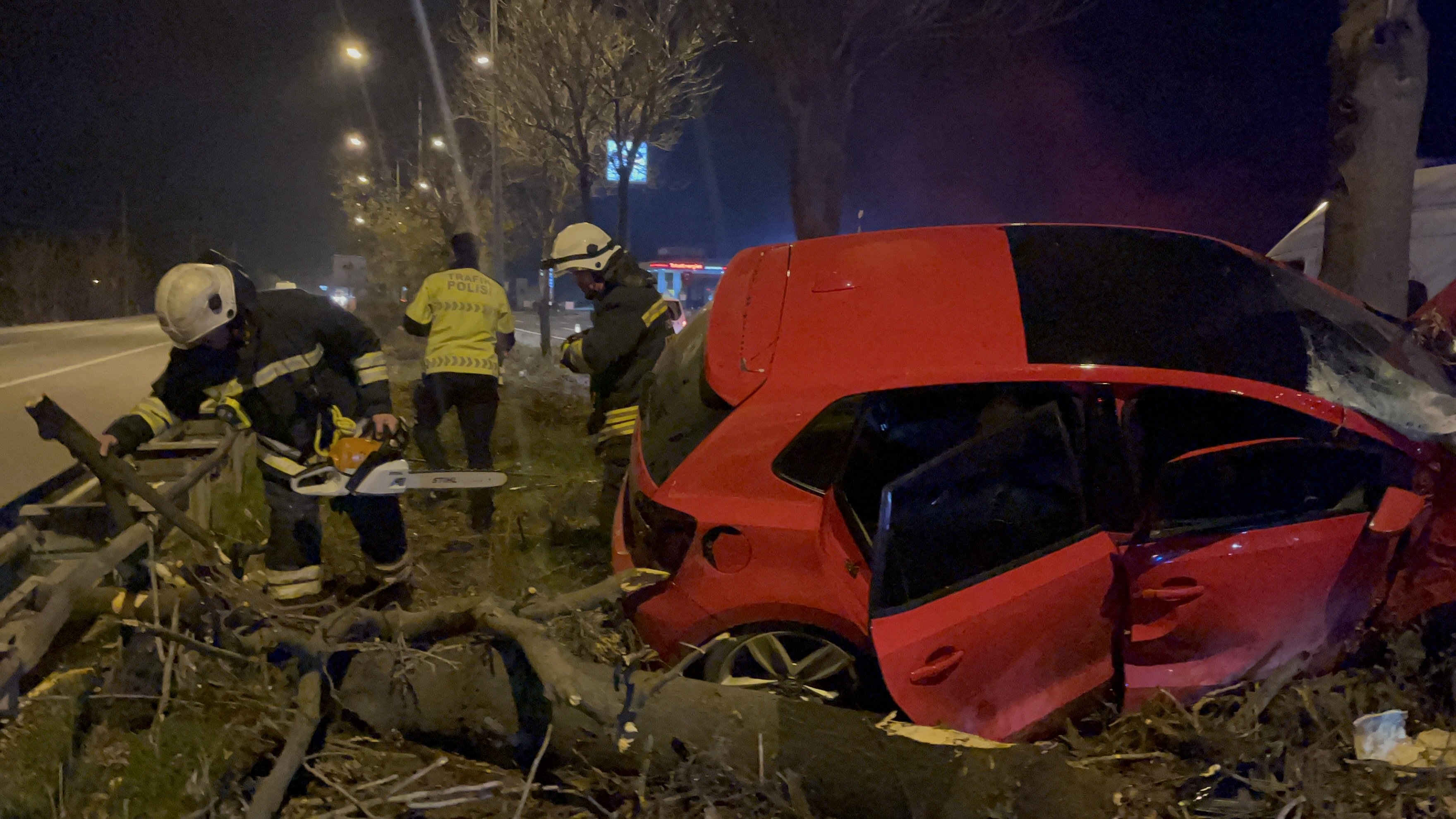 Özcan S. idaresindeki otomobil, Eskişehir-Bursa kara yolunda kontrolden çıkarak refüjdeki ağaca çarptı.