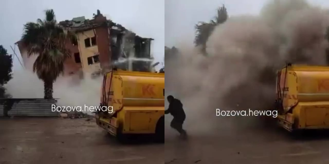 Kontrollü şekilde yapılması planlanan yıkım esnasında, binanın aniden çökmesiyle sokak adeta savaş alanına döndü.