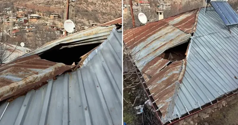 Hakkari haberleri Hakkari de yürekler ağza geldi: Dağdan kopan kaya parçası evin duvarını deldi 03 Şubat 2026