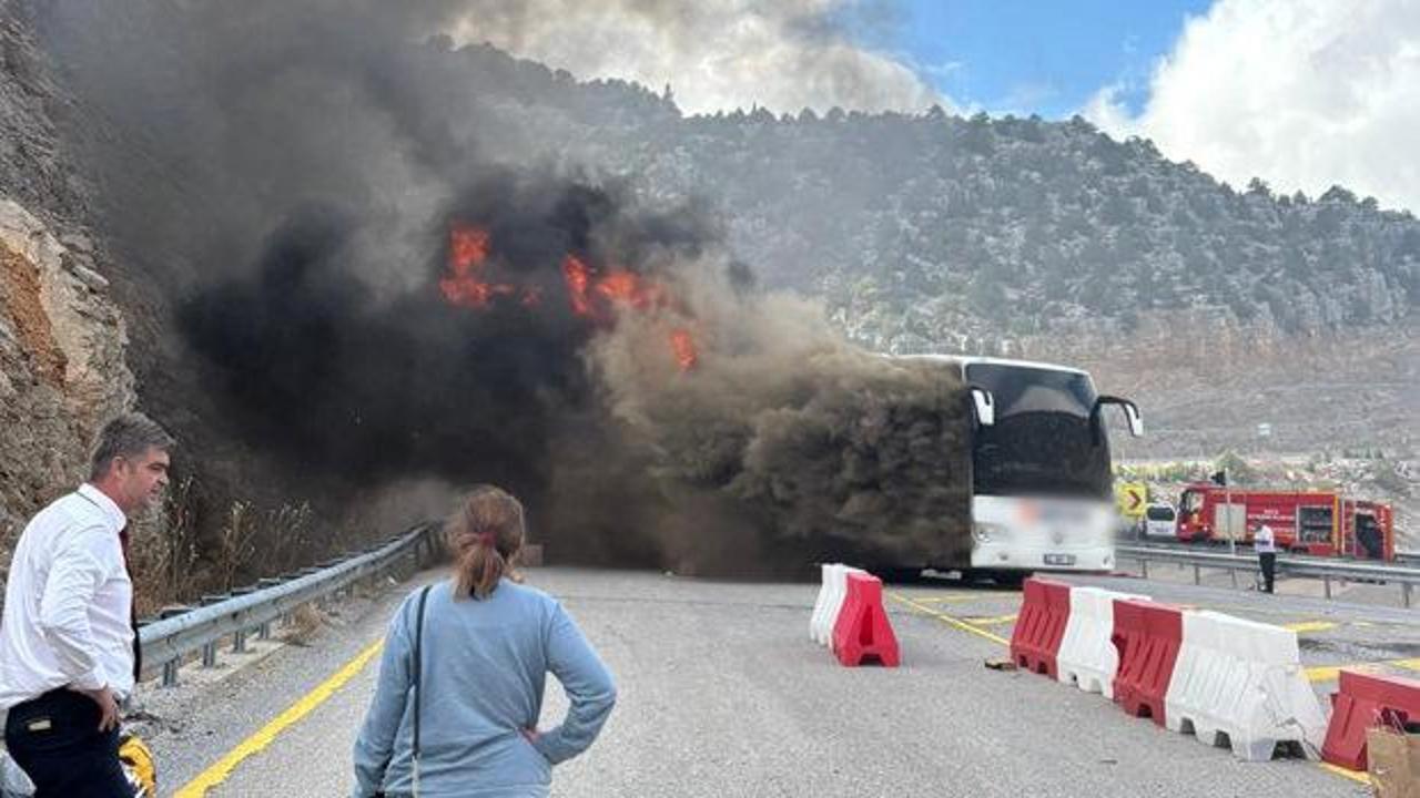 Konya'nın Seydişehir Antalya kara yolunda ilçe merkezine 7. kilometre kala kaçış rampası mevkiinde meydana geldi. Edinilen bilgiye göre, Antalya'nın Alanya ilçesinden Seydişehir ilçesi istikametine seyir halinde olan plakası ve sürücüsünün ismi öğrenilemeyen yolcu otobüsünün motor kısmında yangın çıktı.