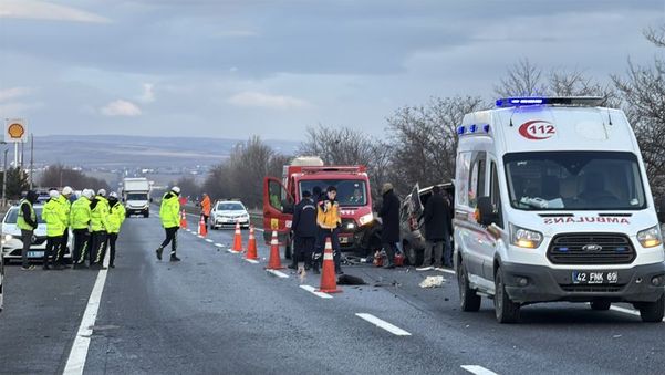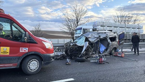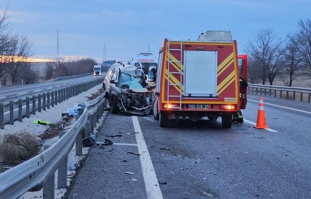 Konya'da kaza, dün sabah saat 06.00 sıralarında, Kulu ilçesi Ankara-Konya kara yolunun 97'nci kilometresinde meydana geldi. İskender Gedik (44) yönetimindeki hafif ticari araç, başka bir TIR'ın sıkıştırması sonucu bariyerlere çarptı.