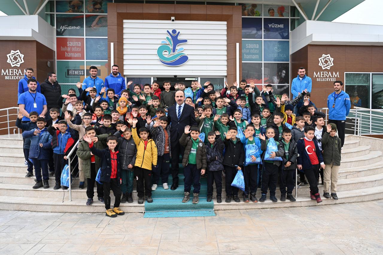 Konya Büyükşehir Belediye Başkanı Uğur İbrahim Altay, “Yüzme Bilmeyen Kalmasın Projesi” kapsamında yüzme eğitimi alan 3. sınıf öğrencileriyle bir araya geldi.