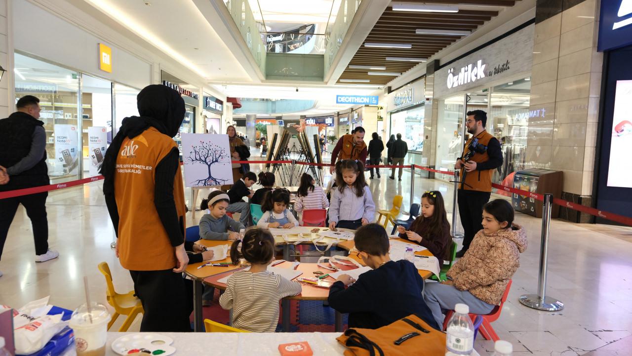 Konya'da misafir edilen 150 Filistinli çocuktan aralarında resim yapma yeteneği bulunanların eserlerinden oluşan resim sergisi, bir alışveriş merkezinde ziyarete açıldı.