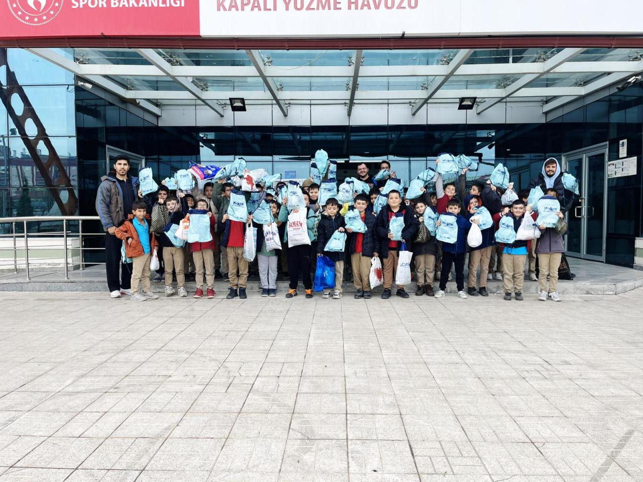 Ayrıca her bir öğrenciye çanta, bone ve havlu hediye ediliyor.