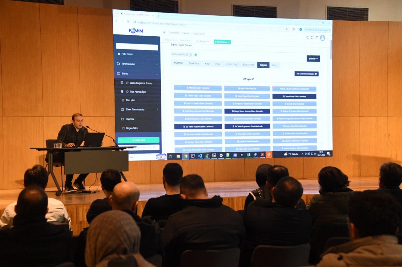 KOSKİ bünyesinde görev yapan tüm birimlerin sorumlu personellerinin katıldığı eğitimde, KOSKİ’nin kendi öz kaynakları ve kurum mühendisleri tarafından tamamen yerli olarak geliştirilen KOMİM yazılımının genel yapısı, modülleri ve kurum işleyişine sağladığı katkılar ayrıntılı şekilde ele alındı.