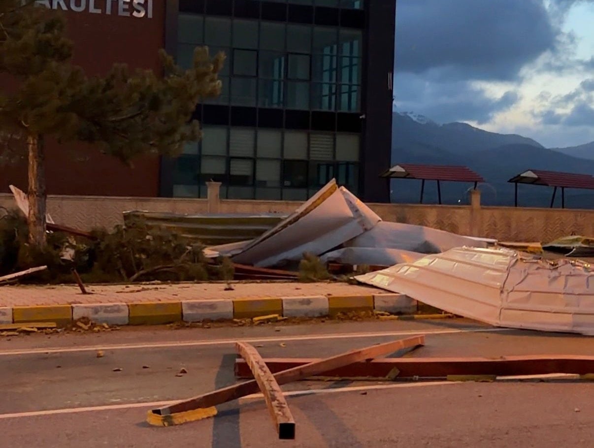 Seydişehir ilçesinde akşam etkisini artıran rüzgar, bazı binalarda ve Necmettin Erbakan Üniversitesi Kamil Akkanat Sağlık Bilimleri Fakültesinin çatısında hasara neden oldu.