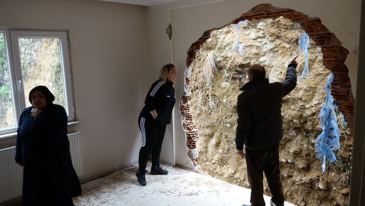"YAMAÇ ÖNÜNE DUVAR YAPILMALI" Binanın 3’üncü katındaki evine giriş yapamayan Ali Aktaş, tedirgin olduklarını belirterek, “Heyelan olduktan sonra binamız tahliye edildi ve dün giriş izni verildi. Binanın güçlendirilmesi yarından itibaren başlayacakmış. Arka tarafla ilgili bir çalışma yapılmayacakmış. Biz oraya bir duvar yapılmasını istiyoruz çünkü tedirgin oluyoruz. Yetkililer yardımcı oldular geldiler ama arka taraftaki heyelanlı alanın açılmasını, temizlemesini istiyoruz. Yamaç evlerimize çok yakın bir daha aynı şeyleri yaşamak istemiyoruz. Küçük bir kaya parçası düşse bile binanın içerisinde geliyor. 1,2 ve 3’üncü katlara girişler şu an yasak. Yarından itibaren kolon güçlendirilmesi yapılacak ve bize de giriş izni verilecek ama biz yapıldıktan sonra arkadaki yamacın da güçlendirilip duvar yapılmasını istiyoruz. Aynı şeyleri yaşamayacağımız ne malum. Herkes tedirgin. Eşim ve çocuklarım gelmek istemiyorlar” ifadelerini kullandı.