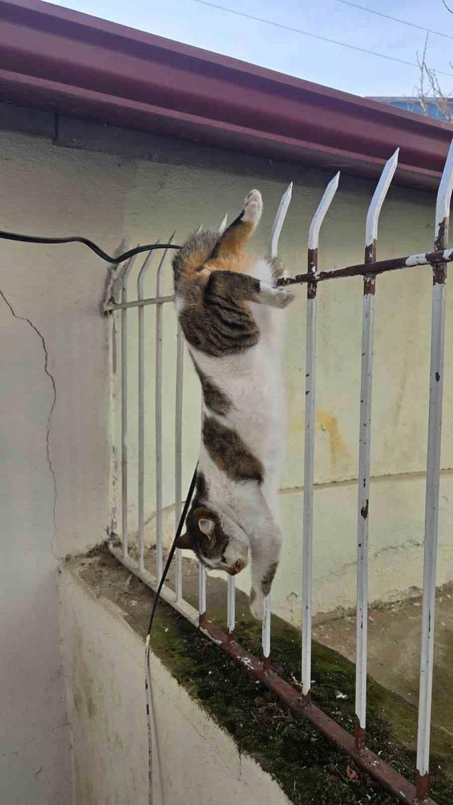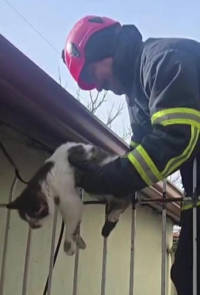 Edinilen bilgilere göre, Mehmet Akif Ersoy Mahallesi Hasan Kefeli Caddesi’nde bir binanın duvarındaki korkuluklara saplanmış haldeki kediyi gören vatandaşlar itfaiyeyi aradı. Barınaktan gelen personelin iğneyle uyuşturduğu kedi, itfaiyeciler tarafından korkuluğun kesilmesiyle kurtarıldı.