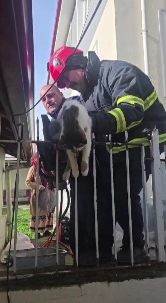 Amasya’nın Merzifon ilçesinde demir korkuluğa saplanan kediyi itfaiye ekipleri kurtardı.