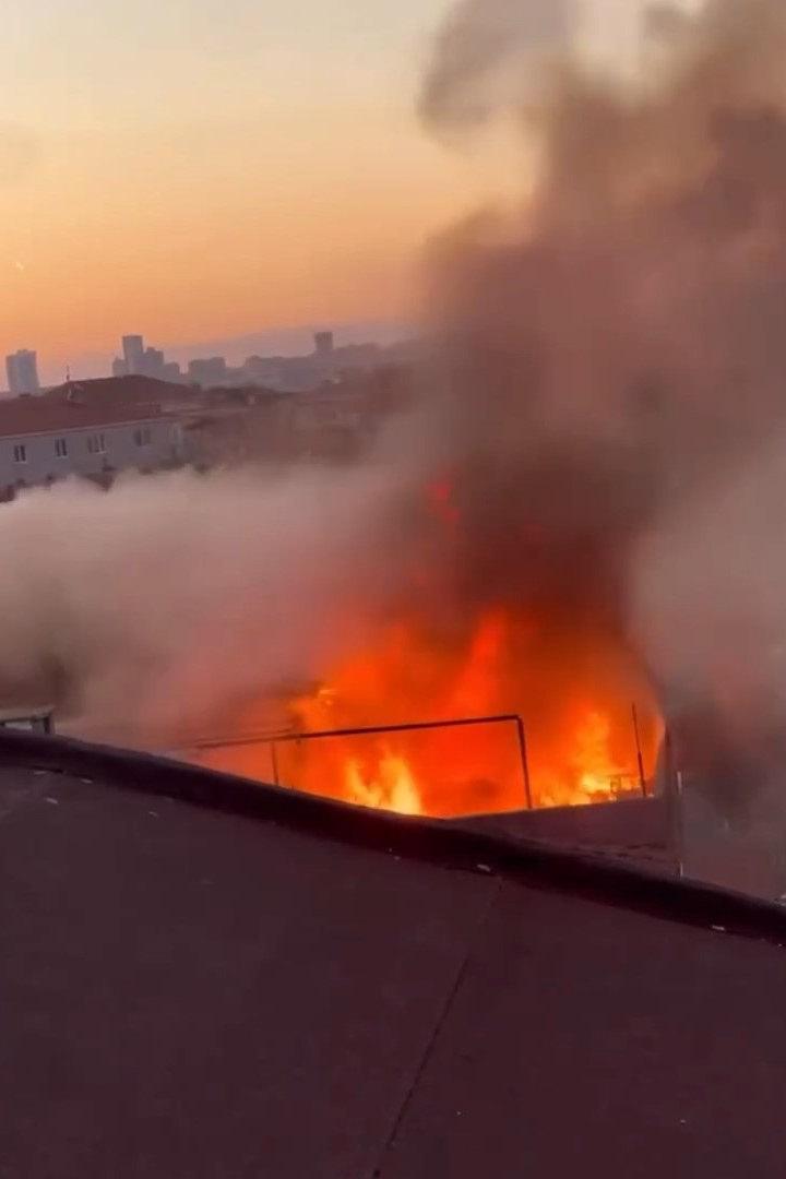 Küçükçekmece de 3 katlı binanın çatısı alevlere teslim oldu