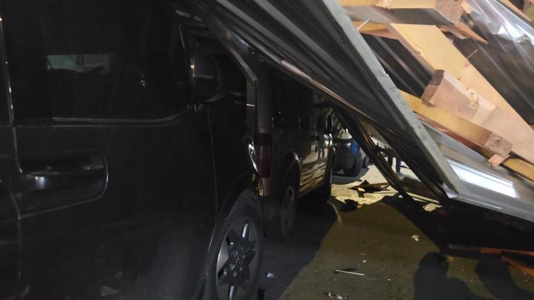 Uçan çatı sokakta park halindeki 3 aracın üzerine düştü. Bu sırada yolda yürüyen 2 kişi, çatının altında kalmaktan son anda kurtuldu.