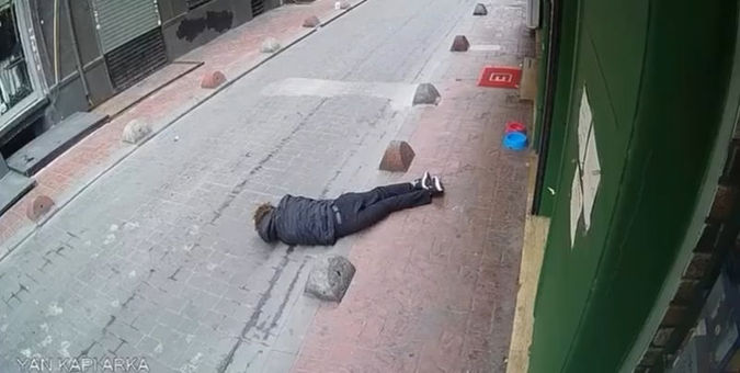 AYAĞIYLA KAFASINA BASTI DHA'daki habere göre kavgaya dönüşen olayda Nurullah P. yere düşen Behçet T.’ye art arda yumruklar attı. Saldırgan Nurullah P., ardından ayağıyla kafasına bastı. Olay anı güvenlik kamerasına yansıdı.