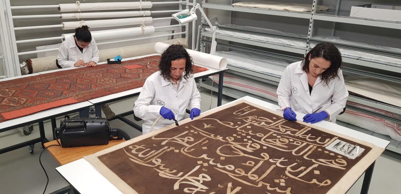 Restorasyon çalışmaları yalnızca arkeolojik eserlerle sınırlı kalmadı; müzelere ait tekstil eserler de kapsamlı bir konservasyon sürecinden geçirildi. Kocaeli Osman Hamdi Bey Evi ve Müzesine ait halılar ile Nevşehir Hacı Bektaş Veli Müzesine ait sancak üzerinde yürütülen çalışmalar titizlikle tamamlandı. Belgeleme, temizlik ve yüzey düzleştirme işlemlerinin ardından eksik bölgeler uygun malzemelerle tamamlandı. Eserler, koruma standartlarına uygun şekilde asitsiz kutular içinde paketlenerek ait oldukları müzelere nakledildi ve yeniden sergilenmeye hazır hale getirildi.