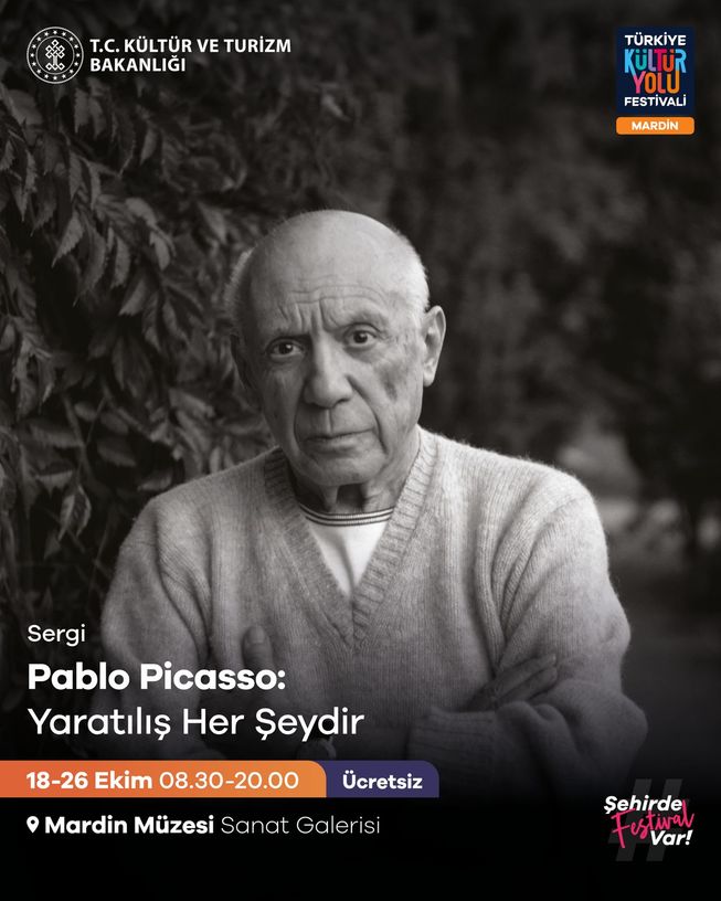 MARDİN, KÜLTÜR YOLU’NDA SANATIN MERKEZİNE DÖNÜŞÜYOR Mardin Kültür Yolu Festivali kapsamında, kentin tarihi ve kültürel dokusunu sanatla buluşturan birbirinden özel sergiler sanatseverlerle buluşacak. Mardin Müzesi Sanat Galerisi’nde açılacak “Pablo Picasso: Yaratılış Her Şeydir” sergisi, ünlü ressam Pablo Picasso’nun sanat yaşamını ve kişisel ilişkilerinin eserlerine yansımalarını gözler önüne serecek. Sergide sanatçının; gravür, çizim, poster, litografi ve fotoğraflarından oluşan tamamı orijinal ve mirasçıları tarafından onaylanmış 50 eser yer alacak.