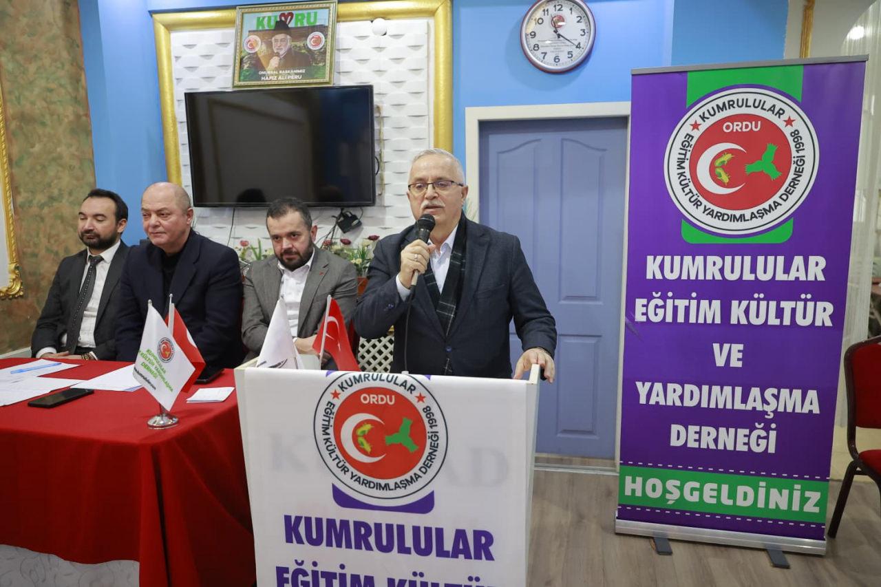 Geçmişte Kumrulular Derneği ve Ordu Dernekler Federasyonu'nda (ORDEF) başkanlık görevlerini yürüten Celalettin Dervişoğlu da burada nitelikli bir grubun görev yapmasından duyduğu memnuniyeti dile getirdi. Derneğin birlik beraberlik duygusu içinde faaliyetlerini yürütmesinin çok kıymetli olduğuna dikkat çeken Dervişoğlu, "Burada herkes bir işin ucundan tutmak ve derneğe katkı sunmak için çaba gösteriyor. Nicelik olarak her ne kadar çok kalabalık olmasak da nitelikli bir topluluğumuz var. Çok önemli yerlerde görev yapan arkadaşlarımız aramızdalar. Katılımları için ben her birine ayrı ayrı teşekkür ediyorum." dedi.