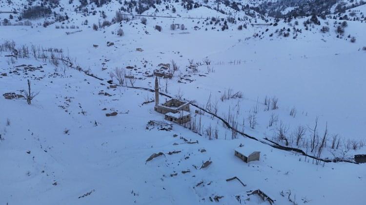 Kuraklık geri getirdi: 16 yıl sonra köy ortaya çıktı! Şimdi de karlar altında