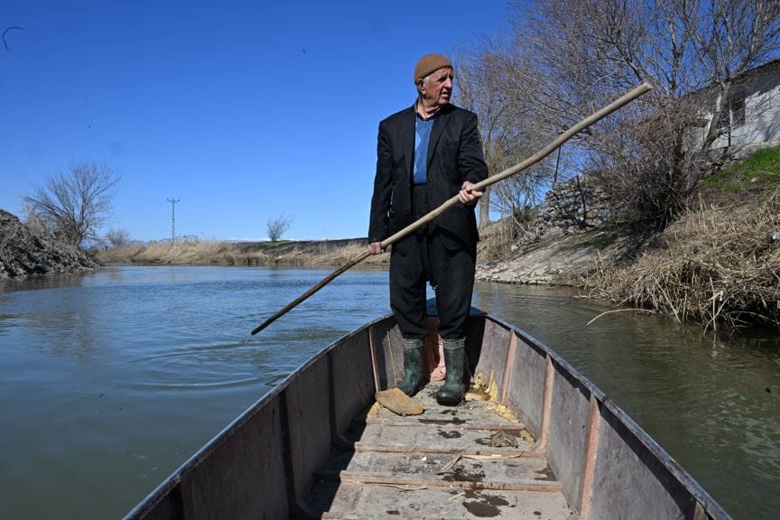 Gavur Gölü'nün tekrar eski haline gelmesiyle yaşam alanına dönen Oğul, kayığıyla açıldığı kanalda balık avlayıp dostlarına ikramlarda bulunuyor.