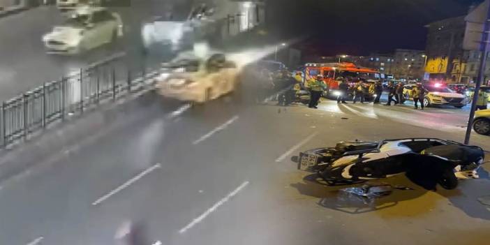 Şişhane’de feci kaza! Otomobilin çarptığı motosiklet durağa savruldu: Ölü ve yaralılar var