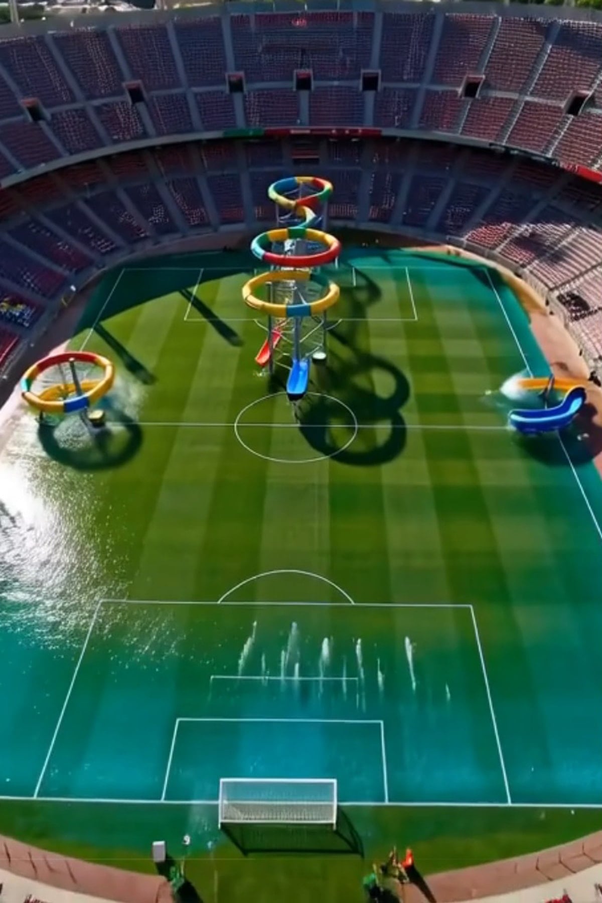 Dünyanın birçok bölgesindeki taraftarlar ve sosyal medya kullanıcıları yaşanan durumu komik fotoğraflarla yorumlarken kulüp adeta dalga konusu oldu. Kimi yapay zekayla stada su parkı görseli oluştururken kimi işçilerin sular içinde kaldığını resmetti.