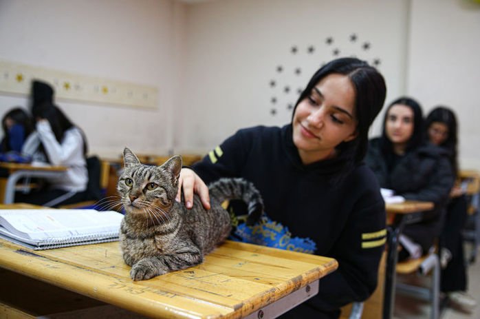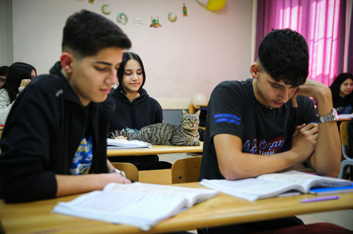 Liselilerle derse giren kedi Pakize okulun 470 inci öğrencisi oldu