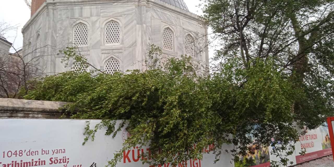 Diğer taraftan, Ayasofya-i Kebir Cami-i Şerifi bahçesinde devrilen ağaç ise belediye ekiplerince kontrollü şekilde kaldırılacaktır."