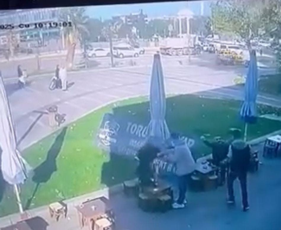 O anlar ise, işyerinin güvenlik kamerası tarafından saniye saniye kaydedildi. Olayda yaralanan kimse olmadı.