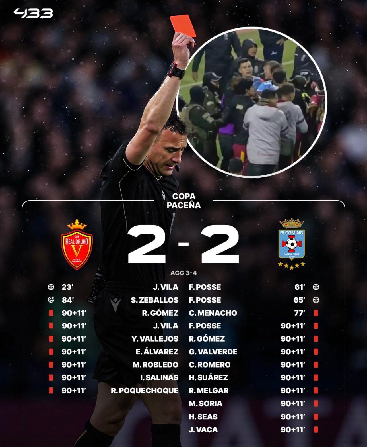 Bolivya Kupası çeyrek final rövanşında Real Oruro ile Blooming arasında oynanan karşılaşma futbol tarihine skandal bir olayla geçti.