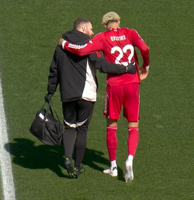 Liverpool'da Hugo Ekitike, Brighton karşılaşmasının henüz 3. dakikasında yaşadığı sakatlık nedeniyle oyuna devam edemedi.