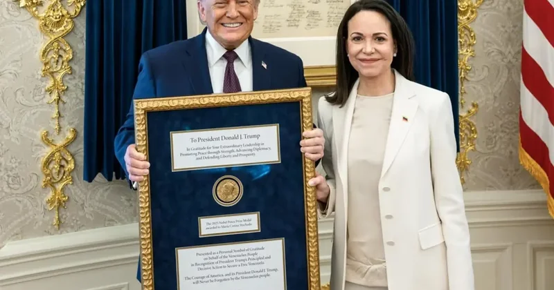 ABD Başkanı Donald Trump ile Beyaz Saray'da bir araya gelen Venezuelalı muhalif lider Maria Corina Machado, kendisine verilen 2025 Nobel Barış Ödülü'nü Trump'a sunduğunu söyledi.