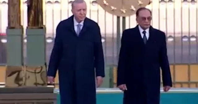 Cumhurbaşkanı Recep Tayyip Erdoğan, Malezya Başbakanı Enver İbrahim’i resmi törenle karşıladı. Karşılama töreninde, tarih boyunca kurulmuş 16 Türk devletini simgeleyen bayraklar ve askerler yer alırken, 21 pare top atışı gerçekleştirildi.