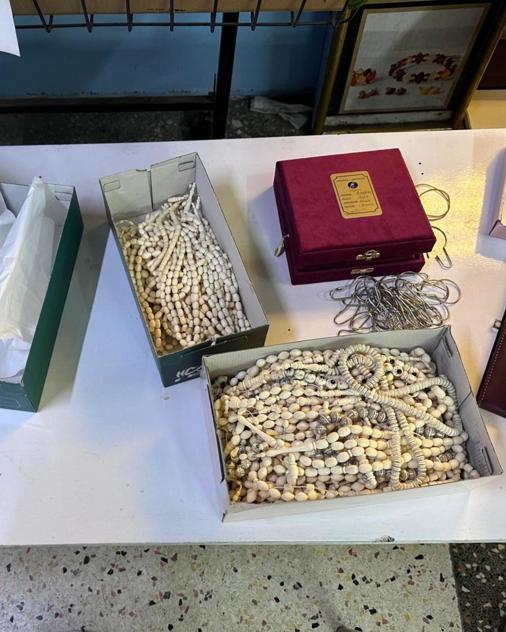 Doğa Koruma ve Milli Parklar Genel Müdürlüğü’ne gelen ihbar üzerine başlatılan soruşturma kapsamında polis ekipleri iş yerine operasyon düzenledi. İş yerinde yapılan aramada; 106 adet fil dişi tespih, 101 adet fil dişi tespih parçası, 180 adet kurt dişi, 10 adet halka şeklinde içi boş fil dişi, 8 adet yumurta şeklinde fil dişi, 13 adet Caretta caretta kabuğundan yapılmış tespih, 8 adet aslan tırnağı, 1 kilo 250 gram fil dişi parçası, 52 adet dekoratif fil dişi obje, 1 adet geyik boynuzundan yapılmış tespih ve yüzük, 1 adet timsah derisi ve timsah dişlerinden oluşan şapka, 1 adet balina dişinden yapılmış tespih, 8 adet karaca trofesi, 1 adet ceylan postu, 1 adet gelincik postu, 1 adet timsah kafası, 1 adet vaşak kafası, 1 adet engerek yılanı tahniti, 3 adet kunduz trofesi ve çene takımı, 10 adet timsah pençesi, 10 adet timsah dişi, 2 adet bufalo boynuzu, 33 adet bufalo boynuzundan yapılmış tespih ele geçirildi. Yapılan inceleme sonrası iş yeri sahibine ilgili kanunlar gereği idari para cezası uygulanırken, yerli türlere ait ürünler için ayrıca tazminat cezası kesileceği öğrenildi. Şüpheli hakkında adli işlem başlatıldı.